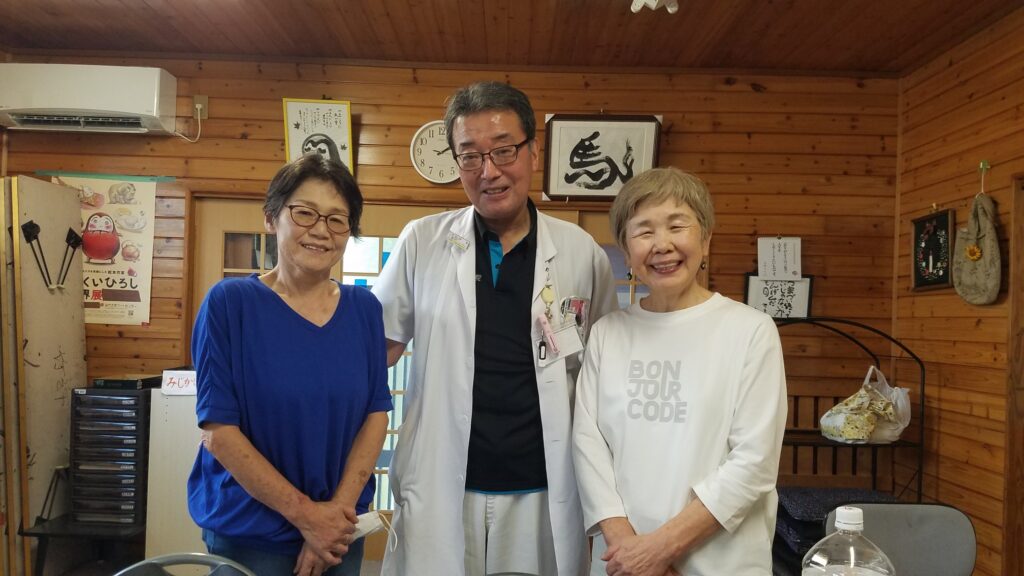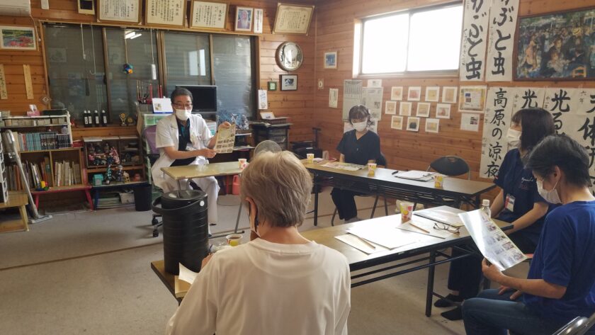前回の南狭野すずらんグループに続き、上麓区二葉班の百歳体操にお邪魔しました。今回の院長講話は墨汁の香がほのかにする髙山様のお宅(書道教室)での開催となり、2名の御参加をいただきました。