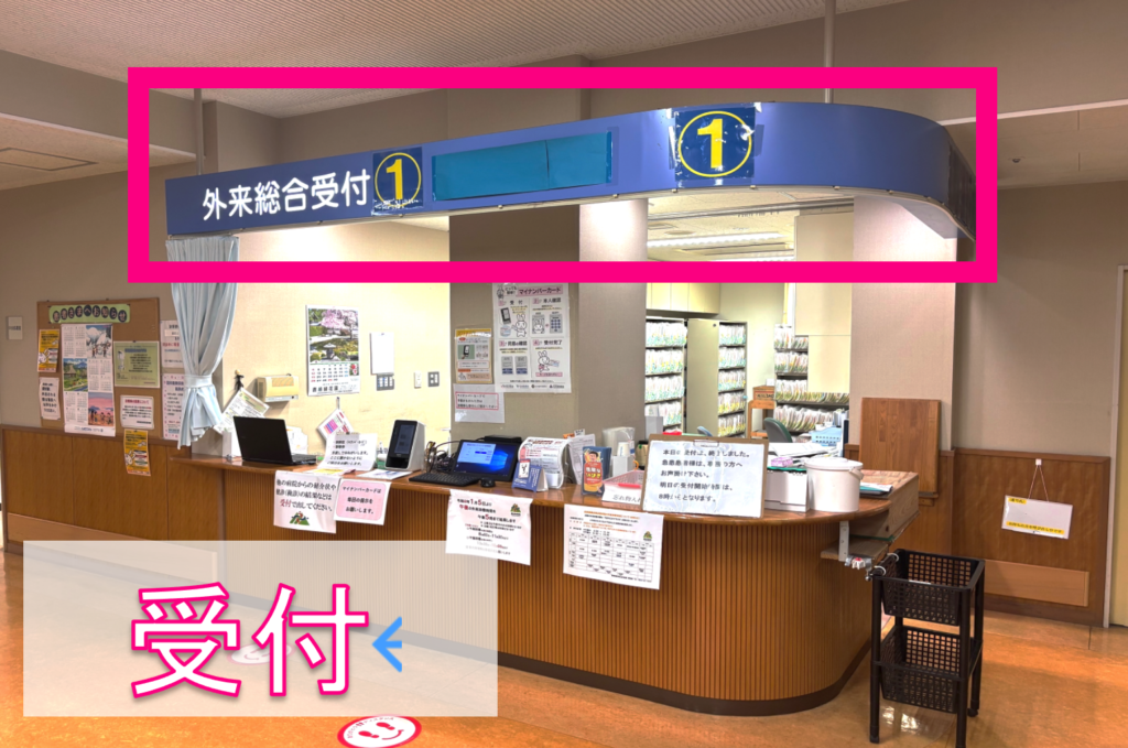 2️⃣外来総合受付①がございますので、こちらで受付をお願いいたします。