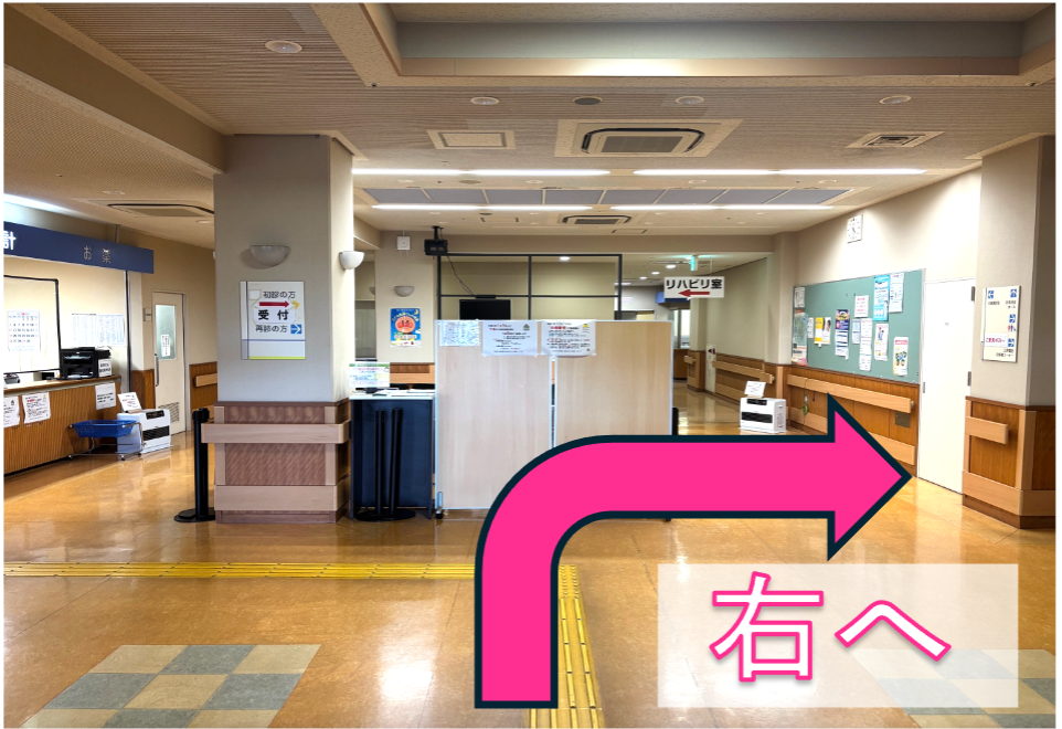 1️⃣正面入口からお入りいただき、右手へお進みください。