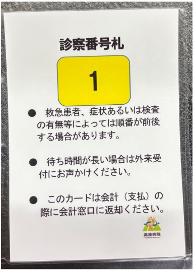 3️⃣受付後、番号札をお渡しいたします。