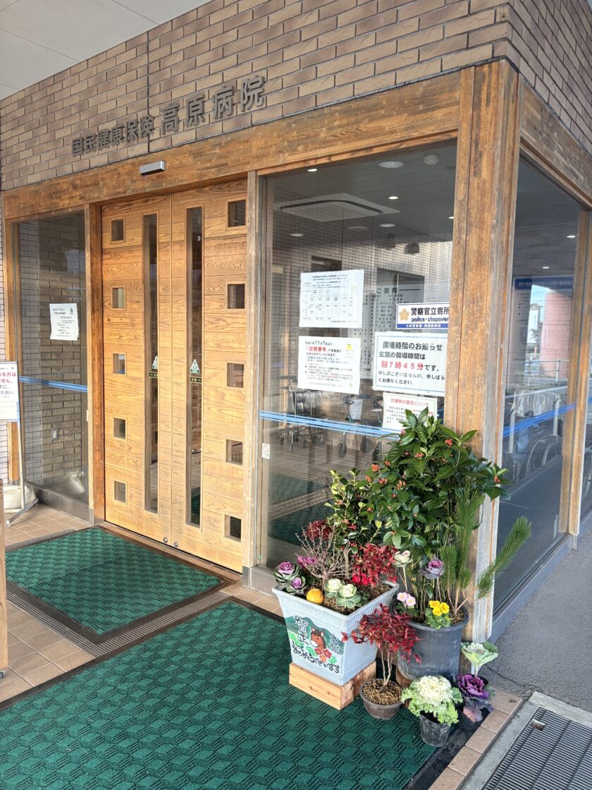 こちらのお正月飾りは、鹿島緑化園様のご好意により、病院玄関前に飾っていただいたものです。