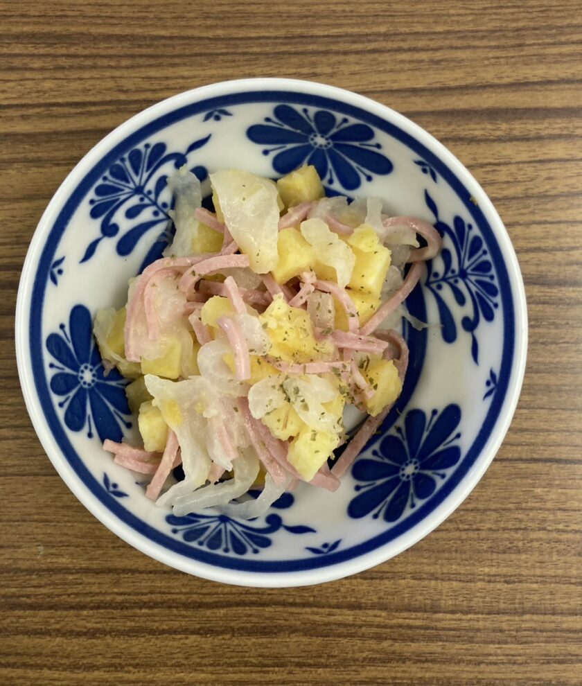 さて、病院の給食では11月に「さつまいもサラダ」を提供しました。さつまいもは、サラダのほかにも混ぜご飯やスイートポテトなどのお菓子の材料としても活用でき、さまざまな楽しみ方ができる食材です。食物繊維をはじめ、ビタミンやミネラルなど、体に必要な栄養素も豊富に含まれています。そのままでも甘くておいしく食べられる点も、さつまいもの魅力のひとつです。お気に入りの品種を見つけてみるのも楽しいですね。