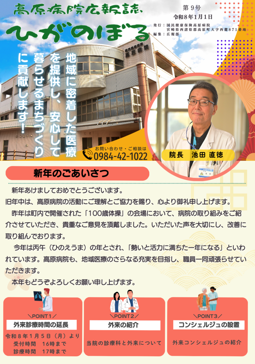 本年も「住み慣れた地域で安心して暮らし続けられる医療」を大切に、皆さまの健康と生活を支えてまいります。