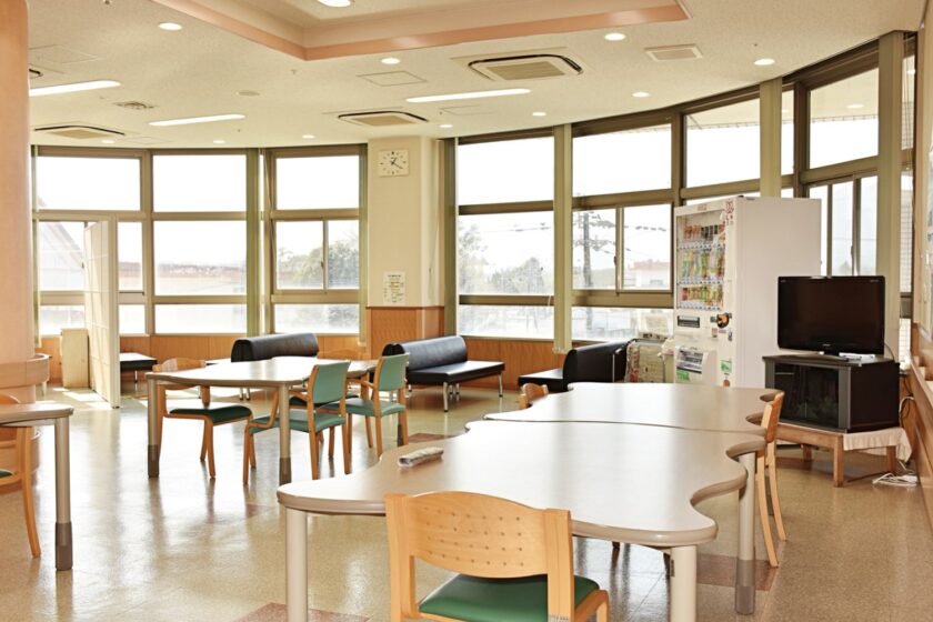 この食堂は主に昼食時に利用され、患者さん同士が集い、会話を楽しみながら食事をされる憩いの場となっています。