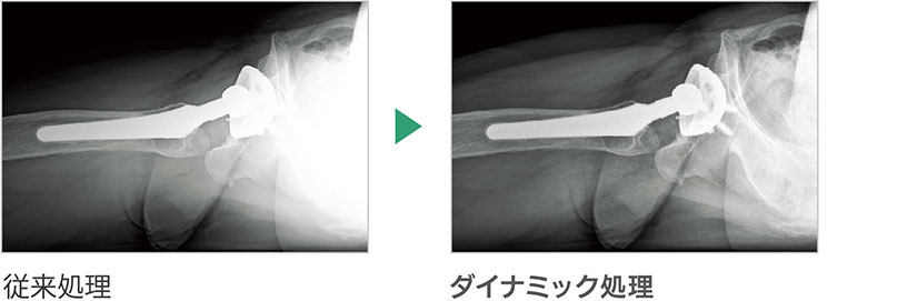 従来X線撮影で使用していたCR(コンピューテッドラジオグラフィ)システムと比べて患者様の被ばく線量が半分以下となりました。